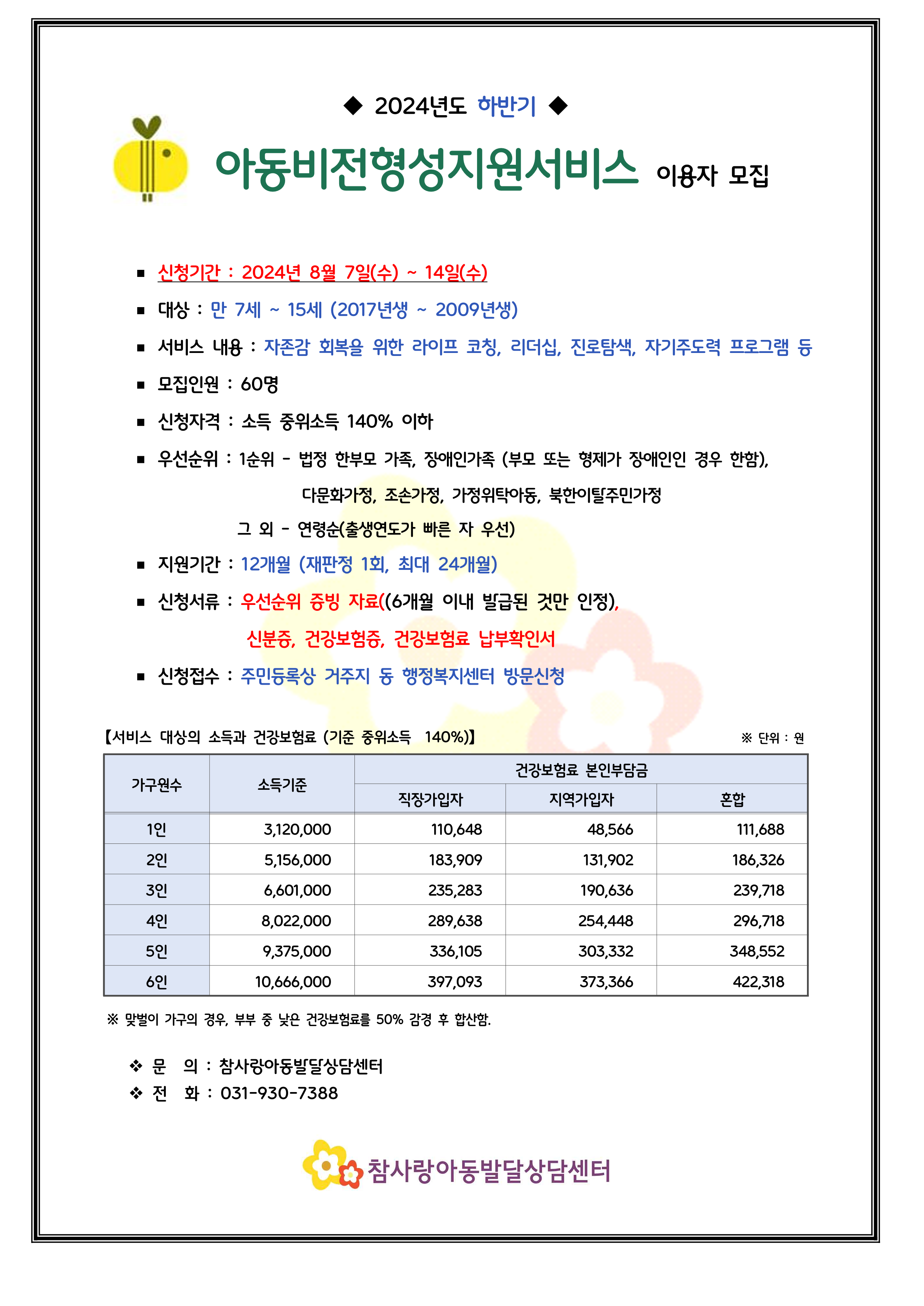 고양시 2024년 하반기 아동비전형성지원서비스 이용자 모집안내