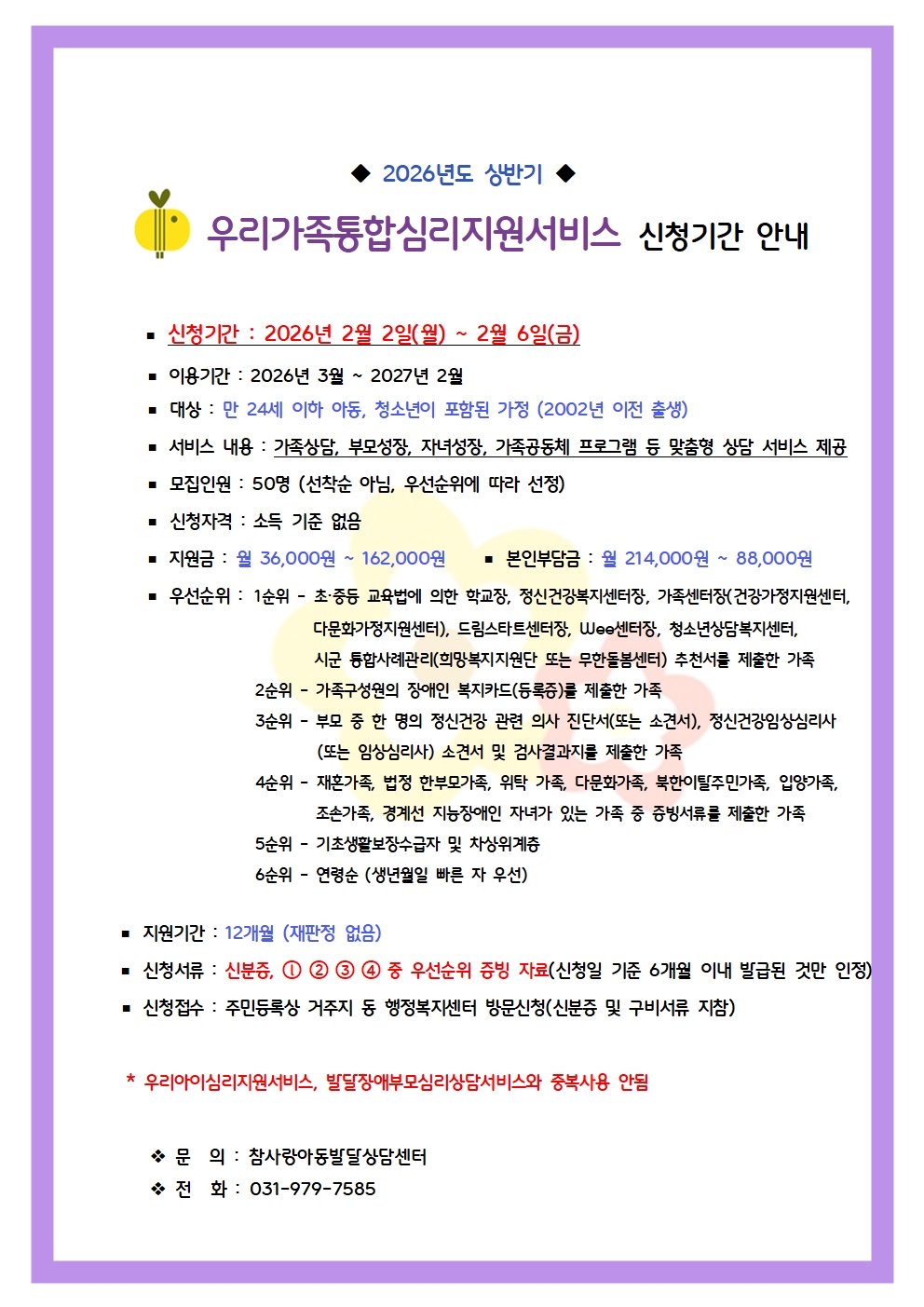고양시 - 2026 상반기 우리가족통합심리지원서비스 이용자 모집 안내