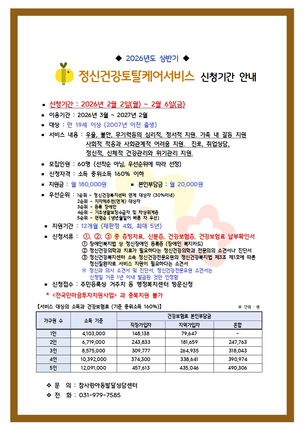 고양시 - 2026 상반기 정신건강토탈케어서비스 이용자 모집 안내