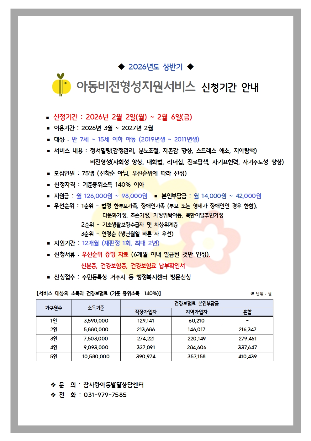 고양시 - 2026 상반기 아동비전형성지원서비스 이용자 모집 안내
